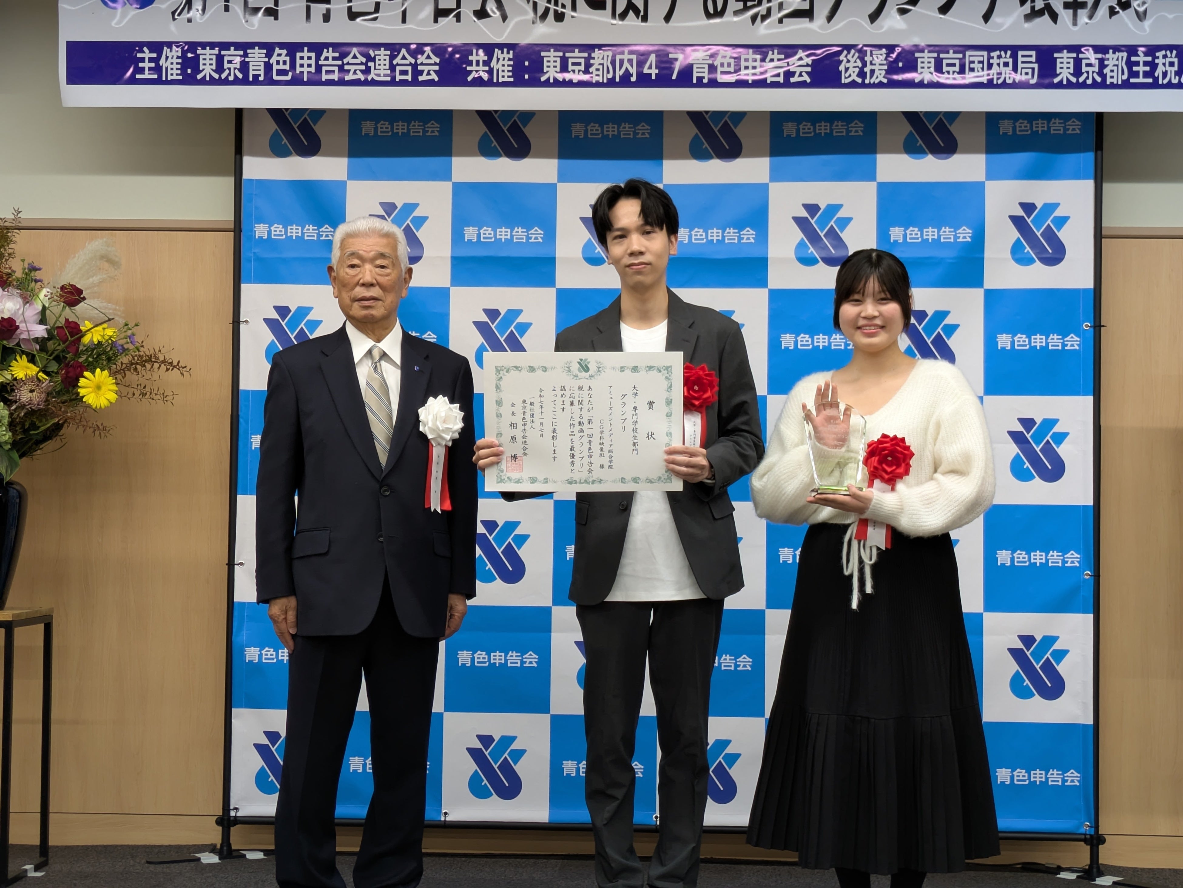 https://www.youtube.com/watch?v=qD3JJXrWEfo11月7日には、東京青色申告会館にて表彰式も開催されました。チームを代表してCG学科の上釜くんと、声優学科の太田さんが出席し、表彰状、クリスタルトロフィー、賞金10万円が授与されました。