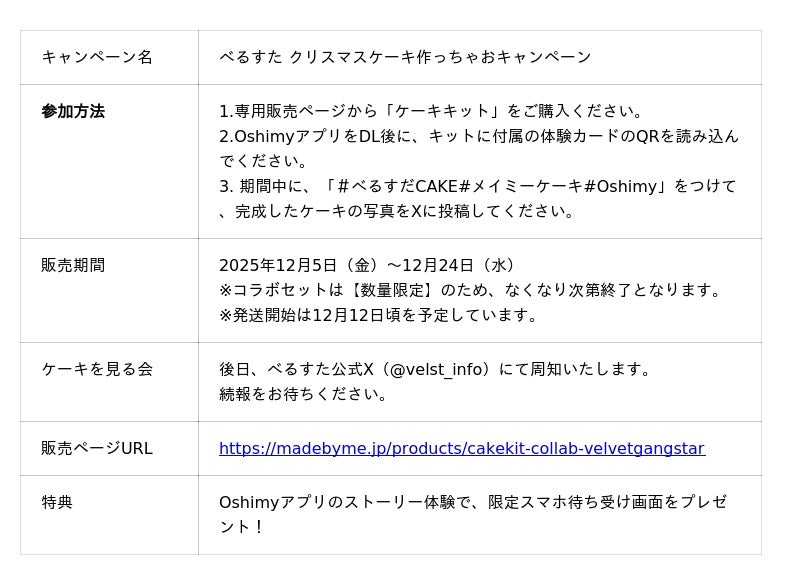【べるすた × MADE BY ME PROJECT コラボセット】Oshimyアプリ連動!べるすたのメンバーと一緒にクリスマスケーキ作りが楽しめる特別コラボセットが登場