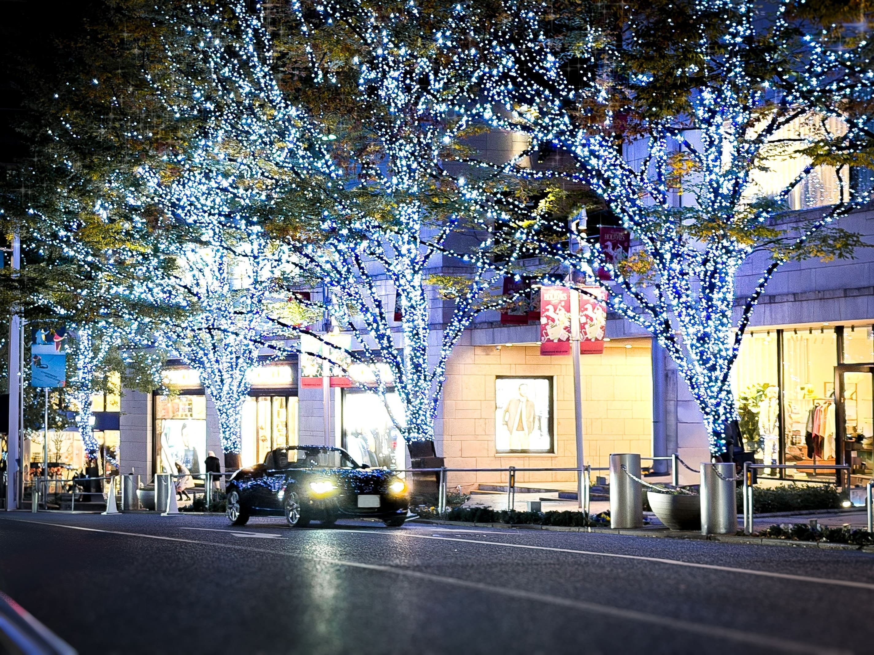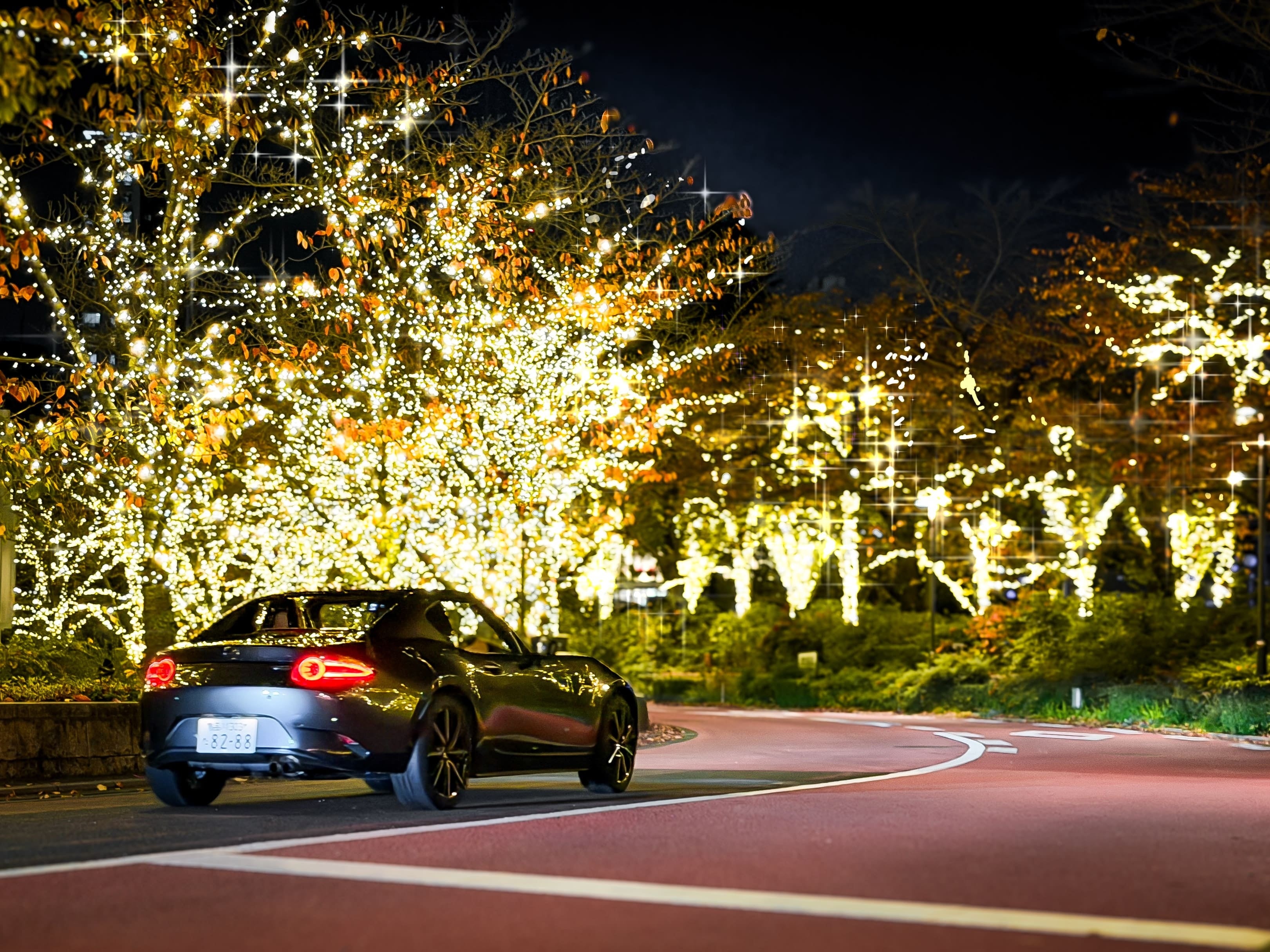 オープンスポーツカーでしか味わえない、冬のイルミネーションをお楽しみいただけます。