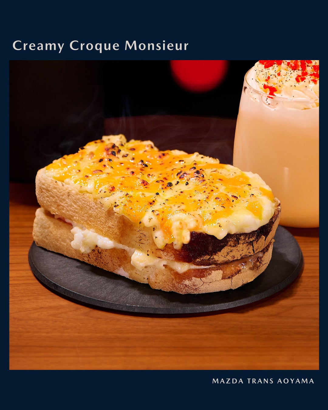 マツダと同じ広島の企業である「八天堂」のカスタードクリームを使用した「クリーミークロックムッシュ」と「Wクリームのアールグレイティーラテ」を、期間限定でご用意。いずれも、MAZDA TRANS AOYAMAでしか味わえない季節限定メニューです。