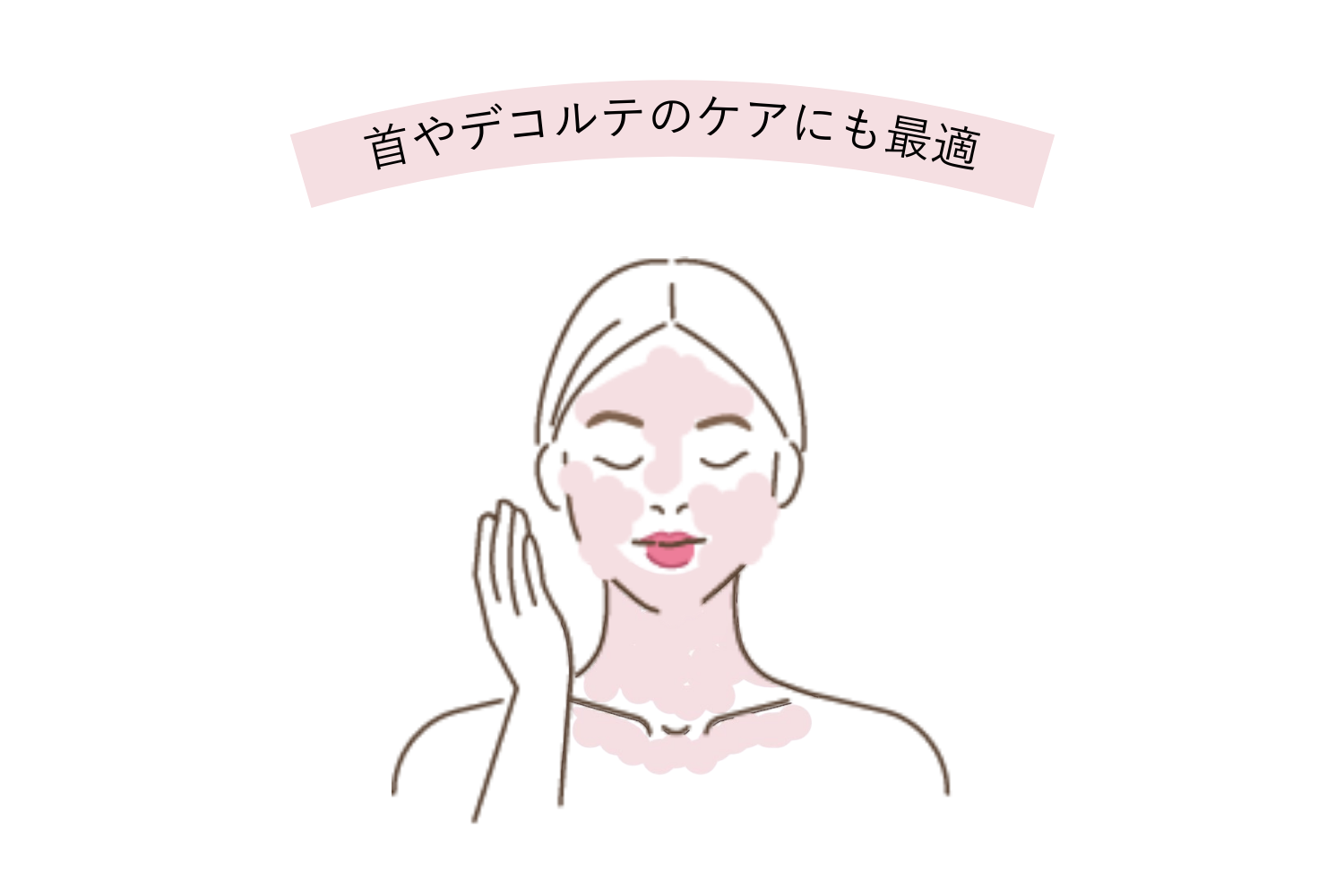 エイジングサインが出やすい首やデコルテにも、泡を優しく広げてパック。ふんわり弾力のある泡が肌を包み込み顔と一緒にハリと潤いを巡らせ、トータルで輝く印象に。