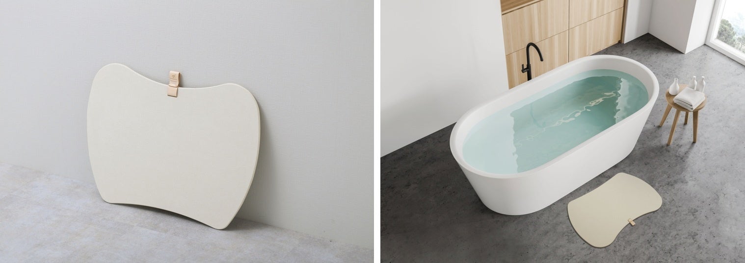 「アイランド」は、バスルーム空間を彩るインテリア。日常のバスタイムをちょっと贅沢なゆったりとした特別なひとときに変えてくれるでしょう。 安心の日本製で、長く愛用できる一枚です。