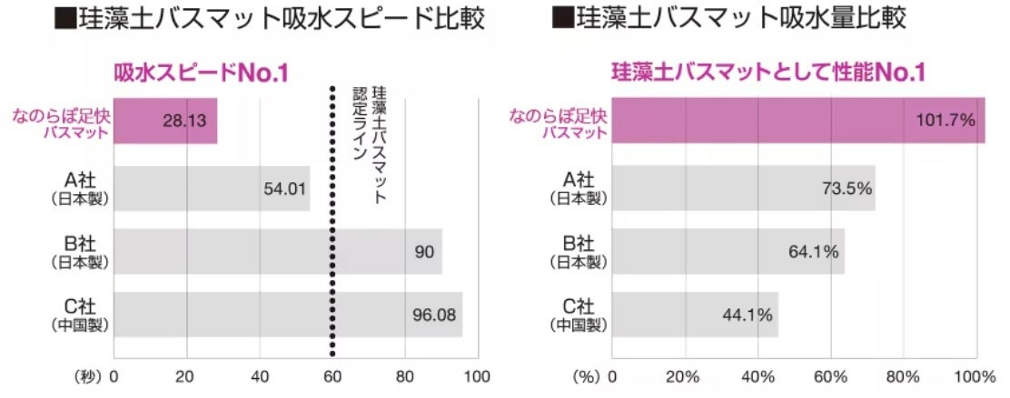 吸水率は2倍以上を記録。また吸水の速さを測定するテストで、15ccの水を吸収するのに