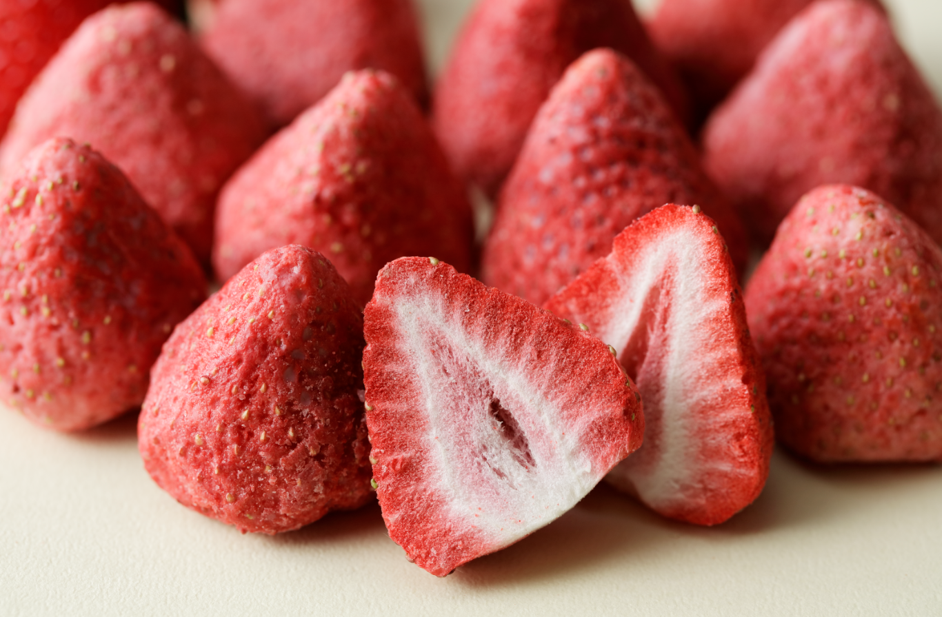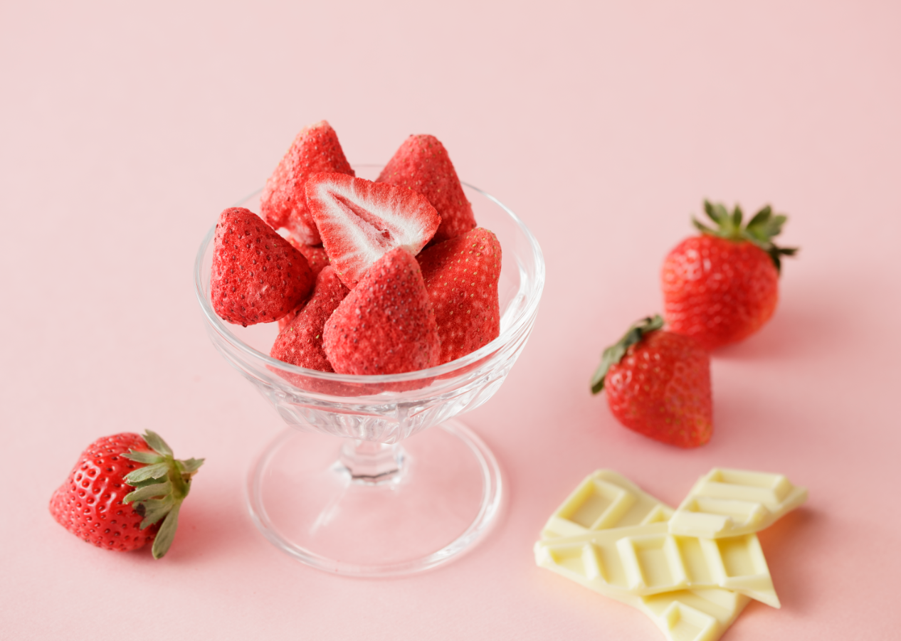 苺の王様といわれる「あかい」「まるい」「おおきい」「うまい」で有名な福岡県産あまおう苺を使用。福岡県久留米市のうるう農園で栽培した、「特別栽培」に認証されている減農薬あまおう苺のみを採用しています。厳選したあまおう苺の美味しさをそのままに、フリーズドライ加工を施して、とろける甘さのホワイトチョコを染み込ませました。あまおう苺本来の甘さと酸味にホワイトチョコが加わった新感覚お菓子となっております。ぜひお手に取ってお楽しみください。