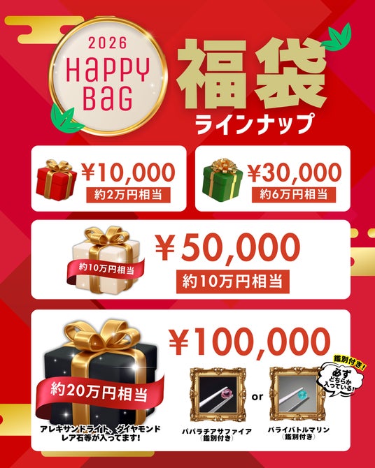 2026年新春を彩る“宝石の福袋”が進化して登場鑑別書付きのルースが必ず1石封入の10万円袋も登場!--東洋ルースが数量限定で発売