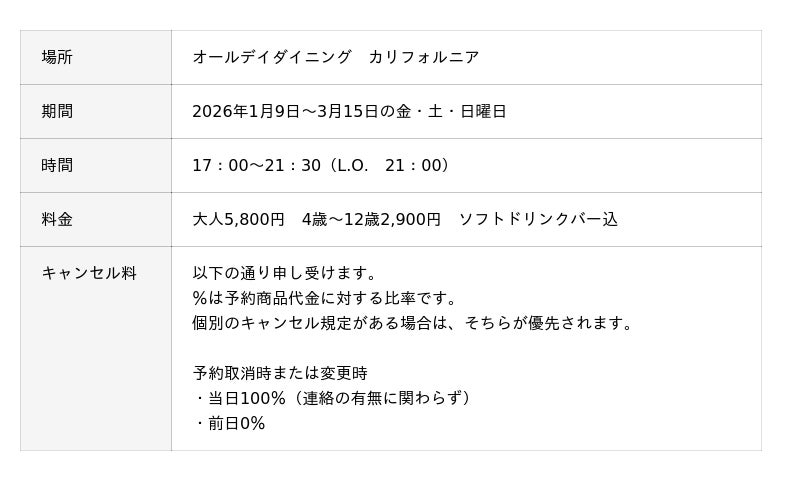 オールデイダイニング カリフォルニア