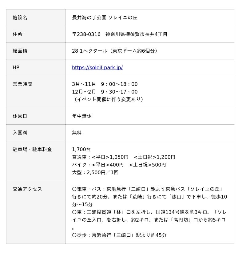 ■「長井海の手公園 ソレイユの丘」について:https://soleil-park.jp/