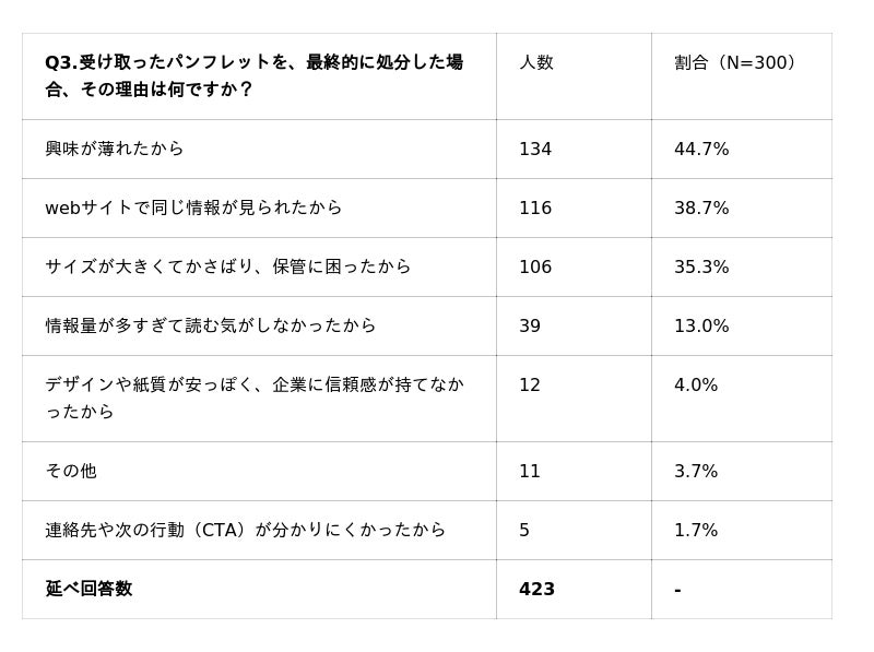 【 質問3. 】受け取ったパンフレットを、最終的に処分した場合、その理由は何ですか?