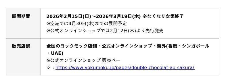 ※公式オンラインショップ 販売ページ:https://www.yokumoku.jp/pages/double-chocolat-au-sakura/
