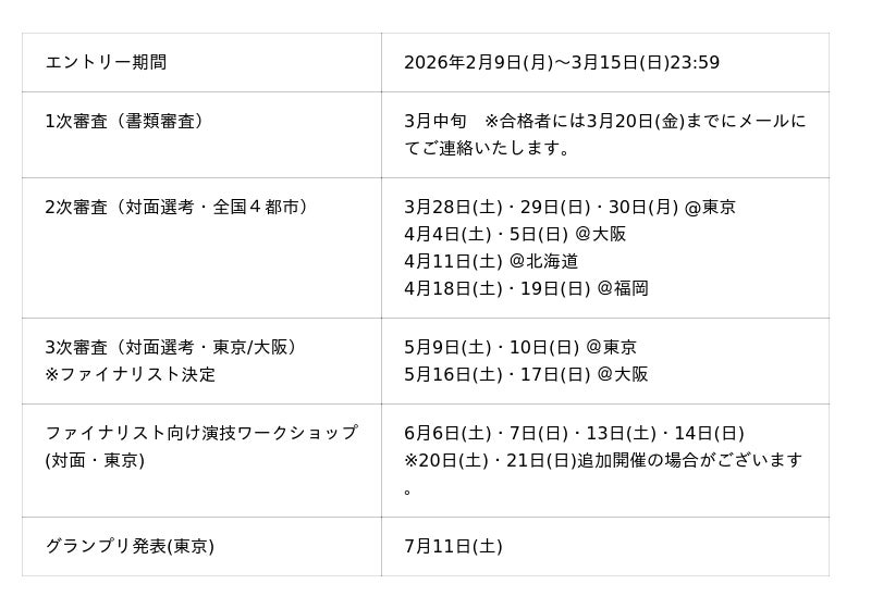 ・オーディションのスケジュールは変更する可能性があります。