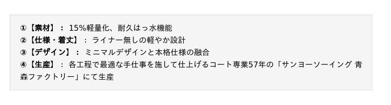 『100年コート ライトウェイトバルマカーンコート』 製品のポイント