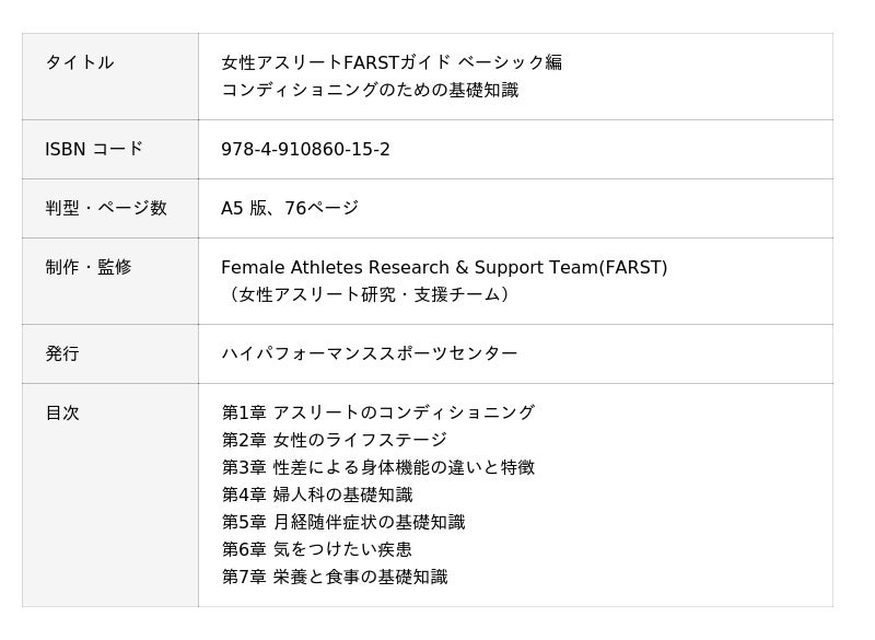 <女性アスリート研究・支援プロジェクト> 電子ブック『女性アスリートFARSTガイド』ベーシック編 -コンディショニングのための基礎知識- 「Female Sport ナビ」にて公開