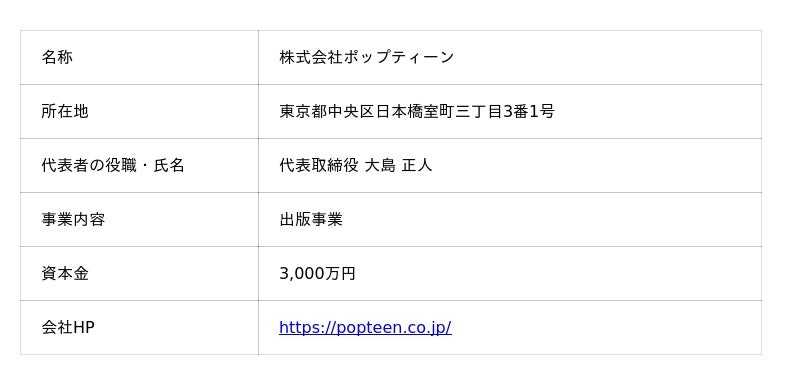 [株式会社ポップティーンについて]