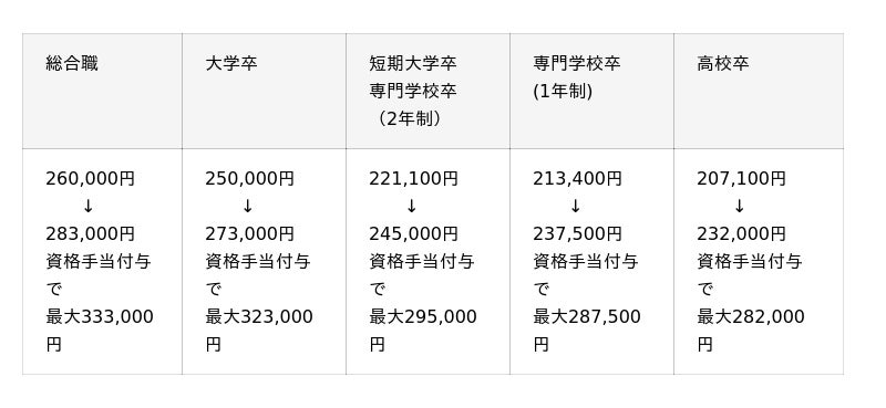※上記初任給は、基本給に首都圏エリアの地域手当を加えた額となります。地域手当は勤務する所属エリアによって異なります。