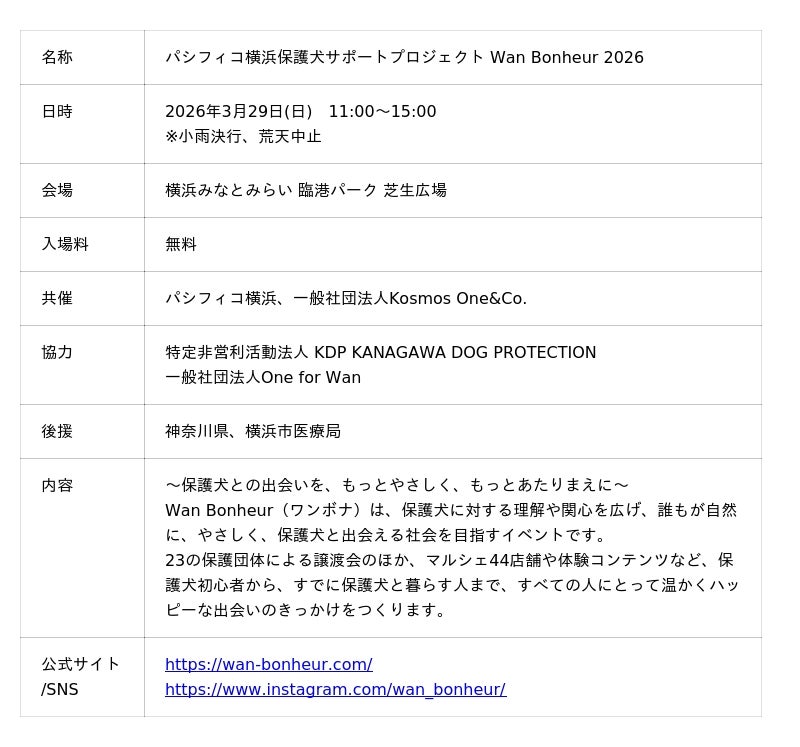 パシフィコ横浜保護犬サポートプロジェクト Wan Bonheur 2026