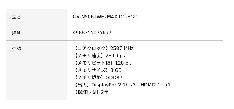 GIGABYTEから、RTX 5060 Tiを搭載したデュアルファングラフィックボード『GV-N506TWF2MAX OC-8GD』、外付けGPUボックス『GV-N506TIXEB-16GD』を発売